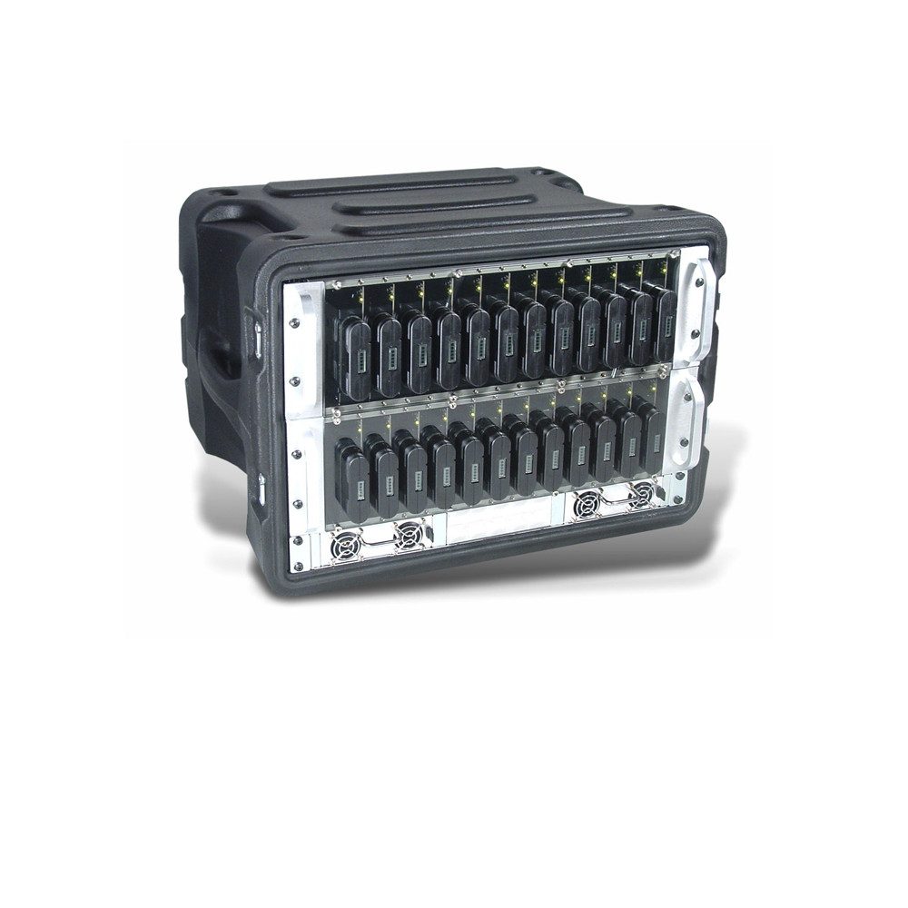 The 12-bay 19-inch rack mountable unit is capable of simultaneous charging, reducing the cycle time for multi battery applications. The CR-12 is compatible with most of our N-Series batteries, charging each at their maximum rate. The modular design allows multiple CR-12s to be stacked to provide charging for any quantity of battery packs, and a 24VDC power supply can be specified to suit the quantity of units required. The unit fits all 19″ racks. Fully assembled units are available for purchase (Note: Flight case and 24VDC power supply sold separately) NOT DESIGNED FOR USE WITH NON INSPIRED ENERGY BRAND BATTERY PACKS.